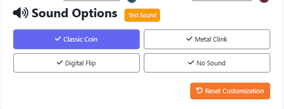 Add a touch of realism with the “Classic Coin” or “Metal Clink” sounds, or make it modern with a “Digital Flip.” You can also turn off sounds entirely if you prefer silence.
