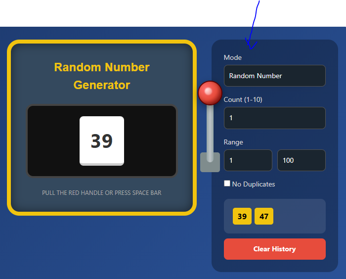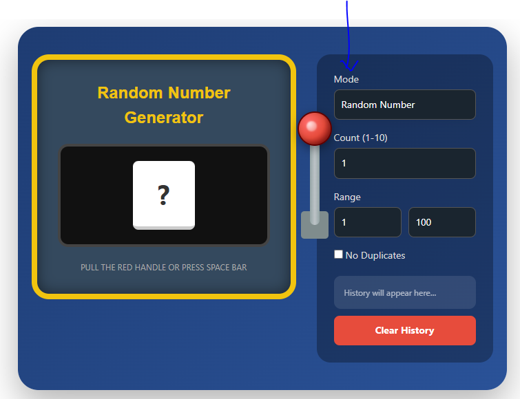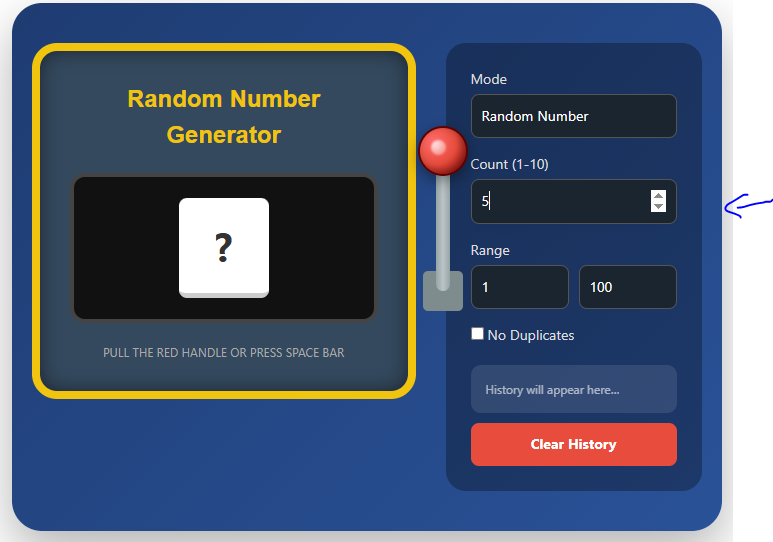 We designed it that way intentionally. A standard button labeled ‘Generate’ is boring. The slot machine adds a sense of anticipation and excitement to the result — it makes the randomness feel real and dramatic, even for a simple number.