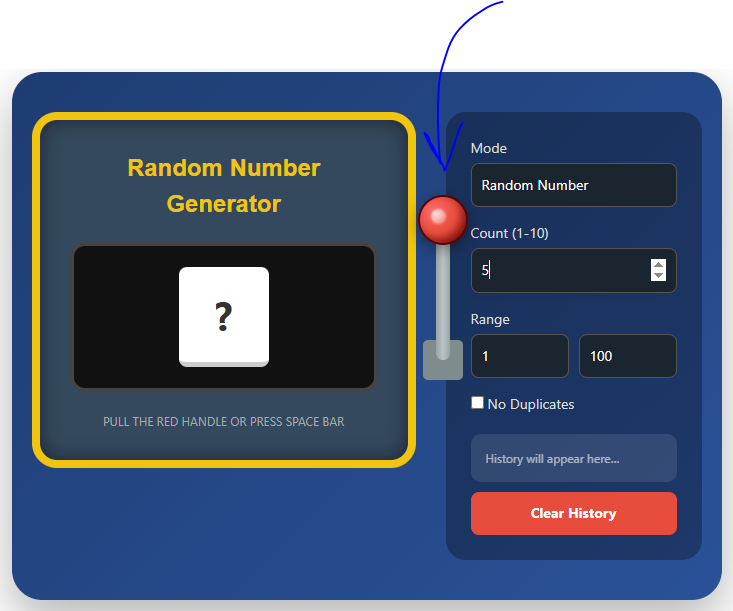 | History | The tool keeps a running log of every spin. You can review past results or clear the history anytime. |